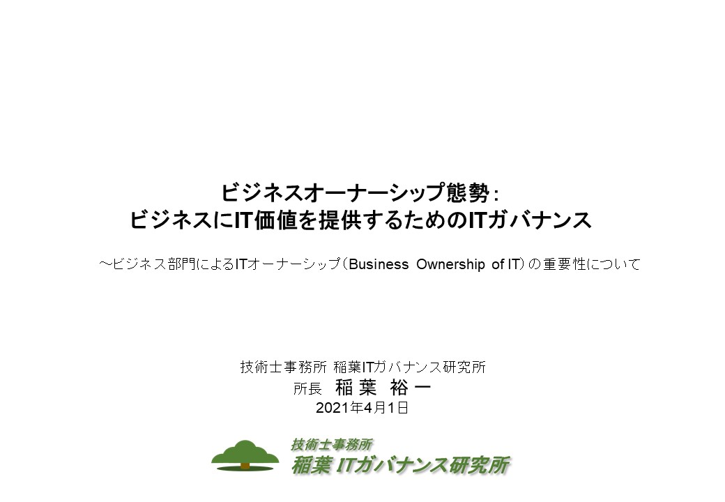 […] (注)ご参考:弊事務所ホームページの「サービス」に掲載のディスカッションペーパー「ビジネスオーナーシップITガバナンス」を参照ください。 […]